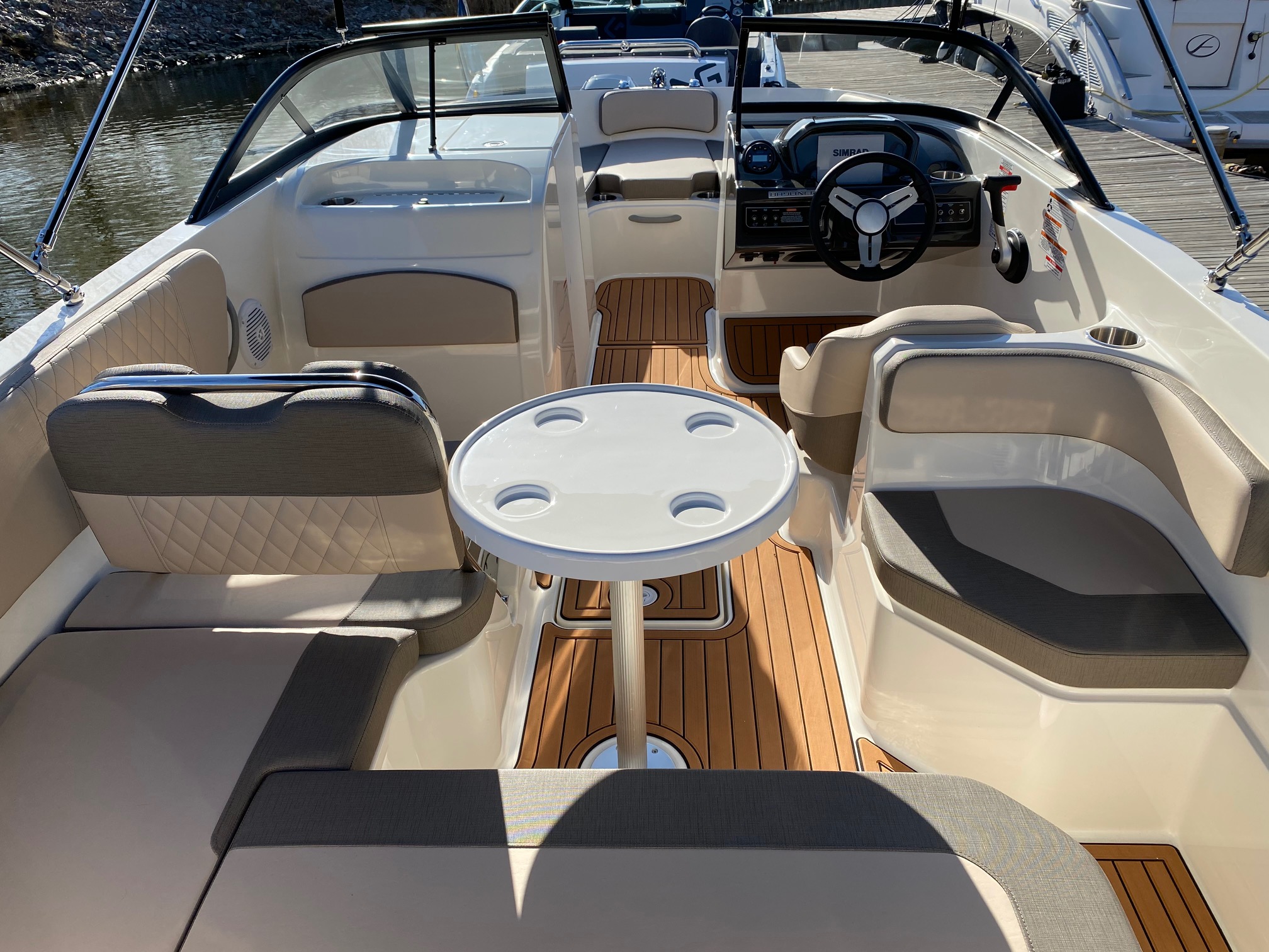 Utrustad med: Elektriskt ankarspel, Simrad GPS/ekolod/färddator, hamnkapell, bemini-top/körkapell, SeaDeck teak, stereo med BT och AUX-in, kemtoa, bord, dusch på badbrygga, flagga, förtöjningspaket, vattenskidkrok, badstege m.m.
