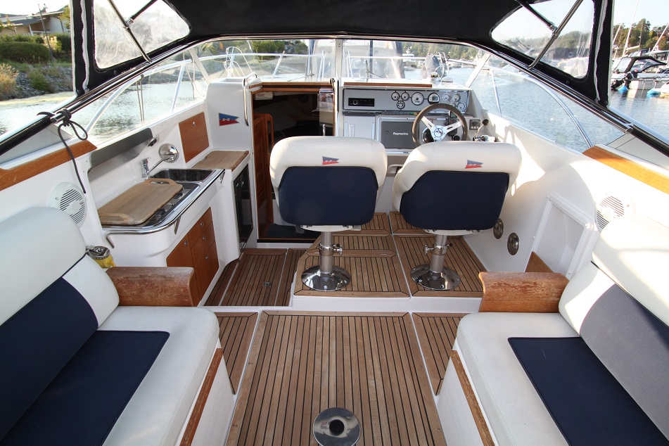 Utrustning: GPS Raymarine C70, bogpropeller, värmare Eberspächer, trimplan, VHF Raymarine RAY240E, stereo + TV, förlängd badbrygga, elektroniskt reglage, landström + laddare, varmvattenberedare, WC med septitank, körkapell, pentry med diskho, 2-lågigt Origokök, kylskåp, badstege m.m.
